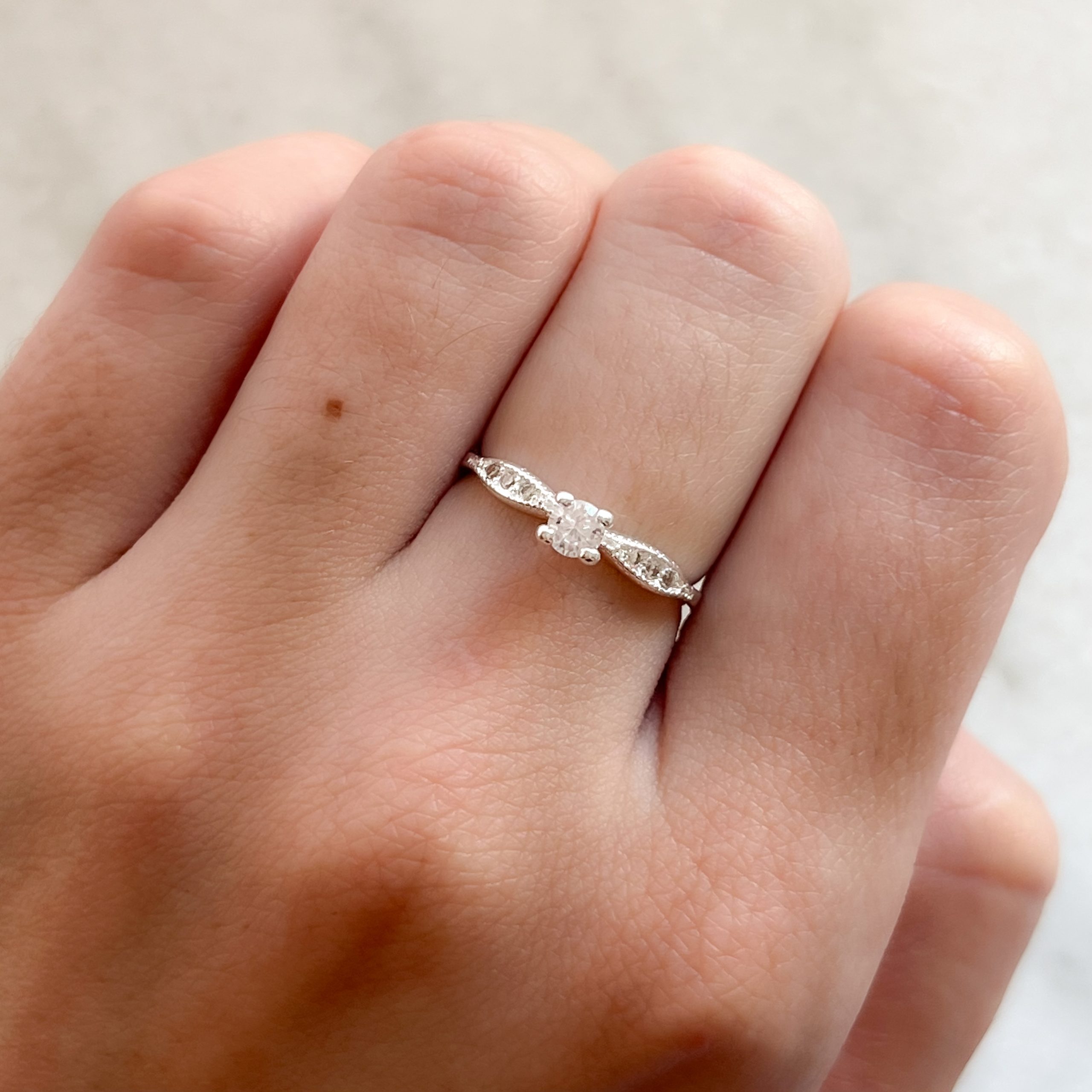 Anillo cintillo laminado en plata con piedras blancas