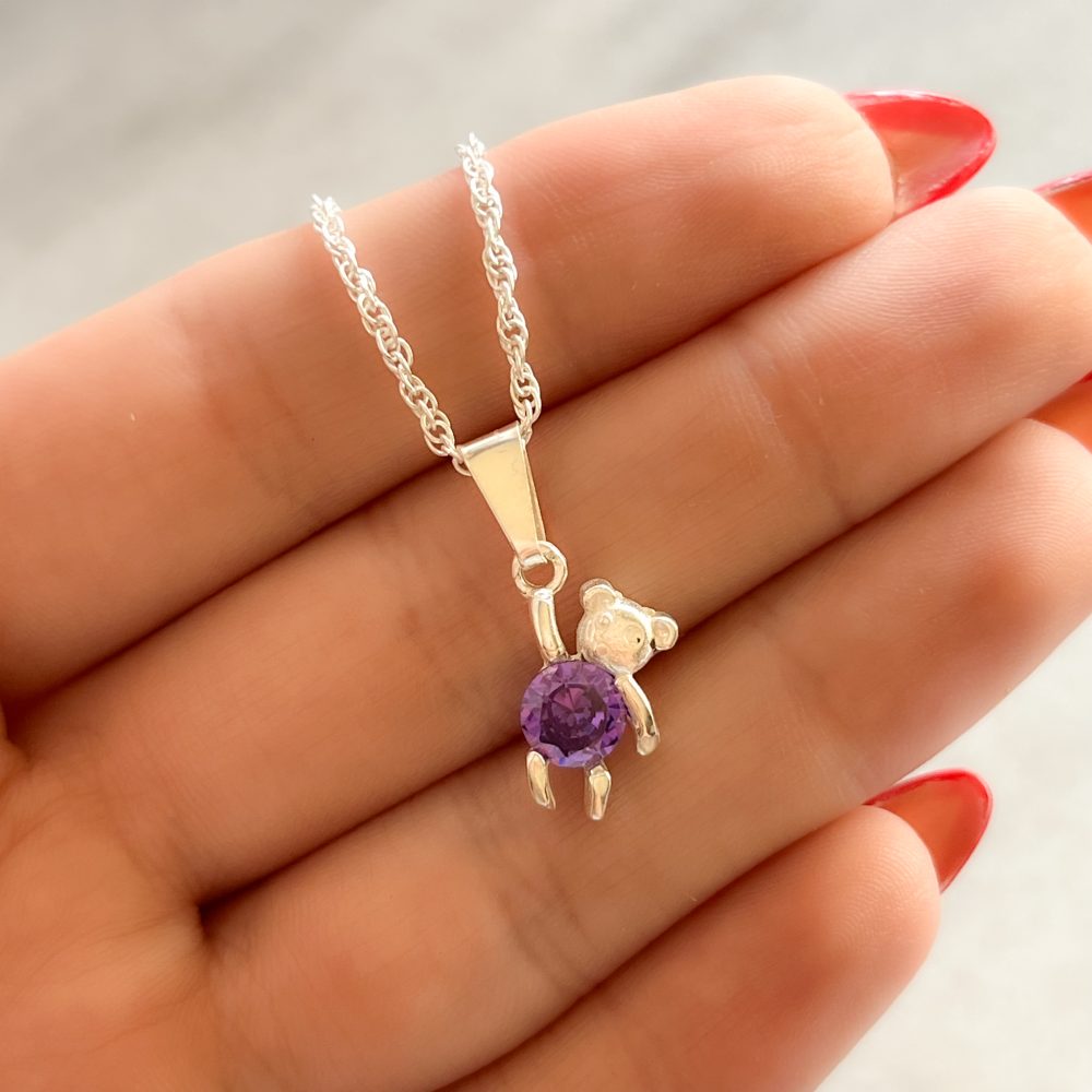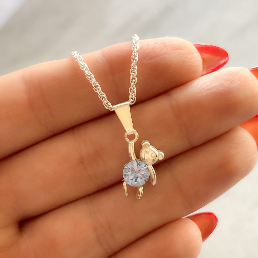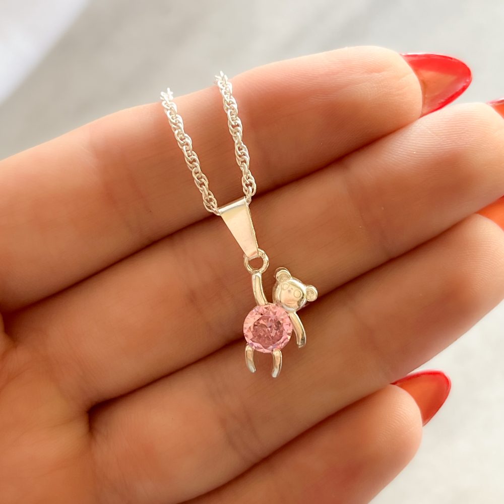 Dije de plata con forma de osito con piedra color